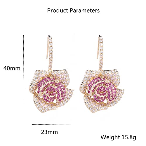 Huggie CZ Flower Dangle Stud Earrings for Women Girls with Charms Fashion Luxury Pave Rhinestone Filigree Camellia Rose Dainty Crystal Drop Dangling Wedding Prom Jewelry Dainty Gifts Valentine Mother's Day 6
