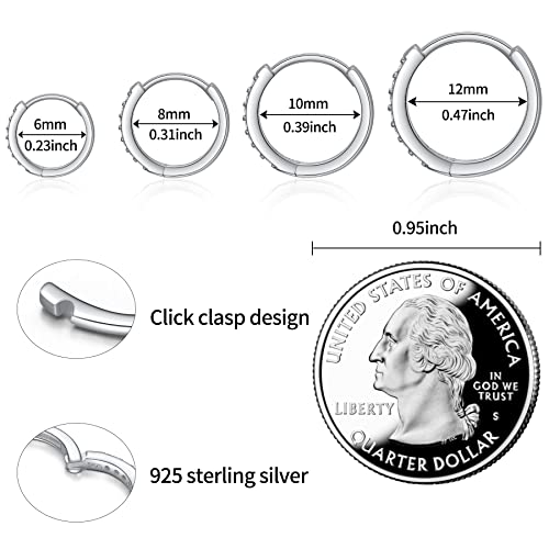 SANNYRA Hoops Earrings for Women, Small cartilage Diamond Sterling Silver Huggie Hoop Earrings, 6mm 8mm 10mm 12mm Cz Ear Studs for Men Women 4