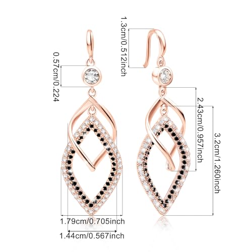 • ◆ Our statement earring dangle style features a classic and stylish two-rhombus interlocking design and is paired with rose gold plating, perfect for adding elegance to any outfit! And one of the rhombus pendants is inlaid with bright white and black cubic zirconia side by side. This makes the drop dangle earrings even more sparkling and makes you even more dazzling!
