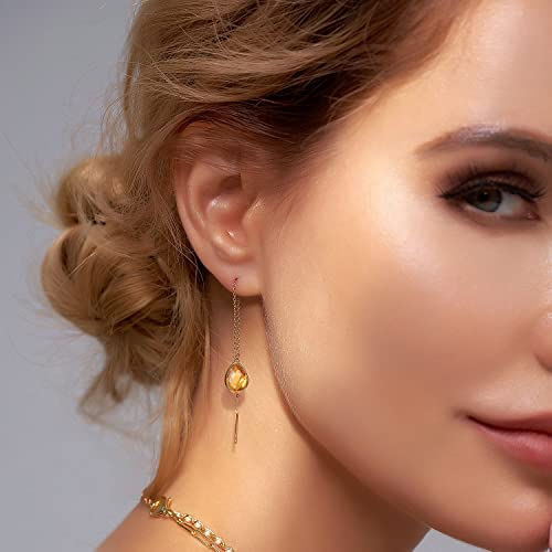 • CITRINE THREADER EARRINGS - This teardrop citrine jewelry threader earrings for women is set with a 7x10mm natural citrine dangle gemstone. 14K Gold plated in brass and the natural citrine made you more charming and elegant.