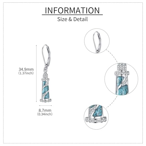 Lighthouse Earrings for Women Sterling Silver Turquoise Lighthouse Dangle Drop Earring Birthday Jewelry Gift for Lover 5