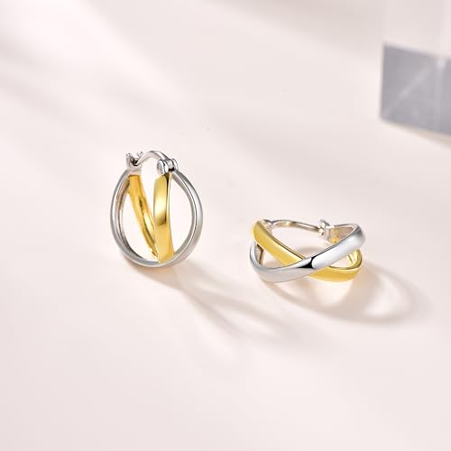 Mixed Metal Earrings with 925 Sterling Silver Ear Posts Two Toned Earrings Silver Hoop Earring for Women Daily Jewel Gift for Her 5
