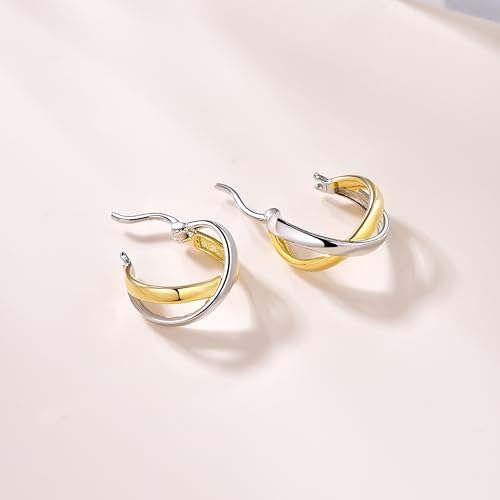 Mixed Metal Earrings with 925 Sterling Silver Ear Posts Two Toned Earrings Silver Hoop Earring for Women Daily Jewel Gift for Her 2