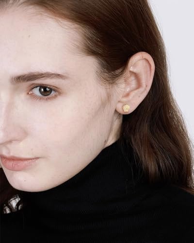 Mini Shell Stud Earrings For Women Girls Stainless Steel Minimalist Dainty Tiny Delicate Scallop Seashell Cartilage Earring Small Cute Studs Gold Silver Summer Beach Ocean Ear Jewelry 4