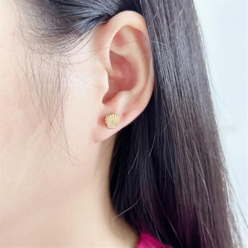 HOT ! Mini Shell Stud Earrings For Women Girls Stainless Steel Minimalist Dainty Tiny Delicate Scallop Seashell Cartilage Earring Small Cute Studs Gold Silver Summer Beach Ocean Ear Jewelry