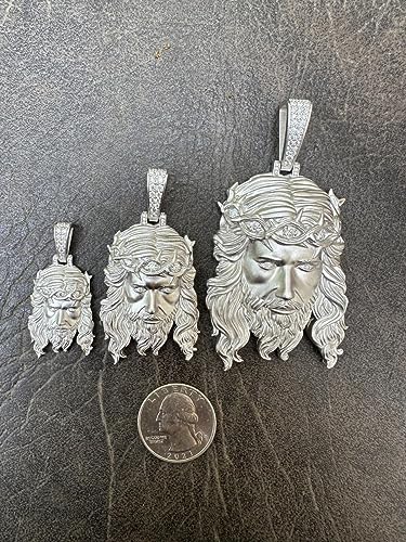 HarlemBling MOISSANITE - Iced Jesus Piece Heavy Pendant Necklace - Very Detailed Solid Back - Solid 925 Silver Matte Sandblasted Finish 7