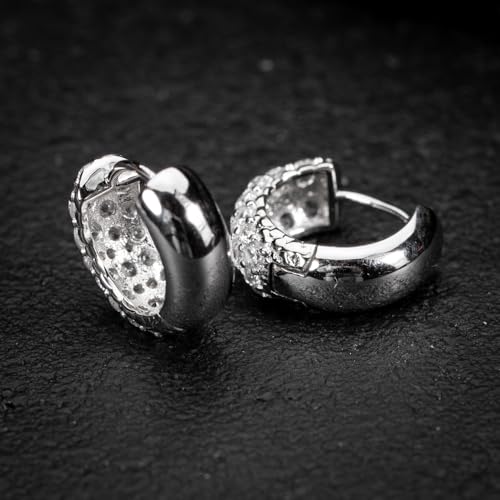 HOT ! White Gold Plated 925 Sterling Silver Hoop Earrings Flower Set 3d Fully Iced Cubic Zirconia CZ 12mm Unisex Ice Out Huggie Small Sparkle Silver Hoop Earrings Fine Jewelry Birthday Gifts for Men,Women