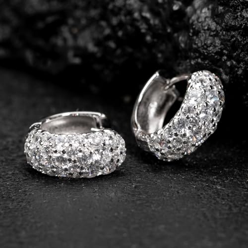 • Classical & Timeless: 925 sterling silver three row cz hoop earrings are made with sparkle AAA grade cubic zirconia for diamond-like brilliance which provides you a peculiar visual feast for a fraction of the price. Featuring a halo with pave AAA quality white cubic zirconia around and middle a white zirconia form a bling hoop, these dazzling, fashion and elegant design not only reveals diamond-like brilliance, but also lights up the look of your beauty. Simple, Classical and timeless.