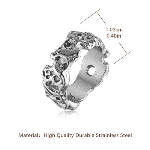 More information about HZMAN Irregular Potholed Ring for Men Women Peculiar Stainless Steel Silver Ring Biker Wedding Cocktail Party Jewelry