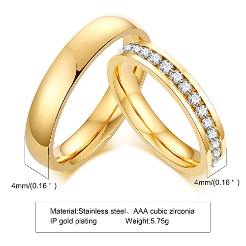 Personalized Matching Promise Rings for Couples with 2 Rings Wedding Rings Set for Him and Her Gold,Wedding Band for Women Cubic Zirconia Ring,Mens Engagement Rings Tungsten Size 5-13 4