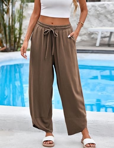 Xiaoxuemeng Wide Leg Linen Pants for Women Elastic Waisted Baggy Barrel Pants Lounge Harem Pants 7