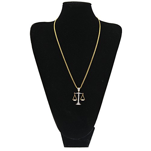 More information about Scales of Justice Necklace Balance Libra Pendant Gold Plated Copper Necklace Zircon Iced Out Jewery for Men and Women Chain 24 inches