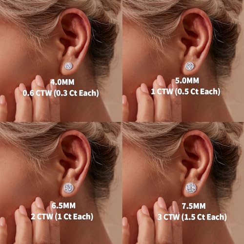 Moissanite Earrings Studs for Women, Round Cut D Color VVS1 Clarity Lab Created Moissanite Studs Earrings for Men S925 Sterling Silver Plated with 18k White Gold Jewelry 5