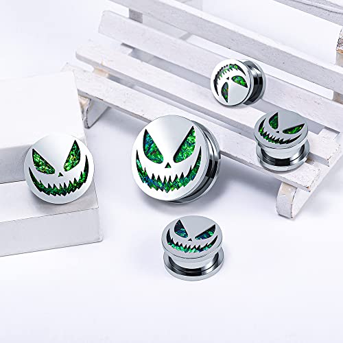 COOEAR Screw Back Gauges for Ears Piercing Halloween Pumpkin Style Fake Opal Ear Plugs and Tunnels. 1