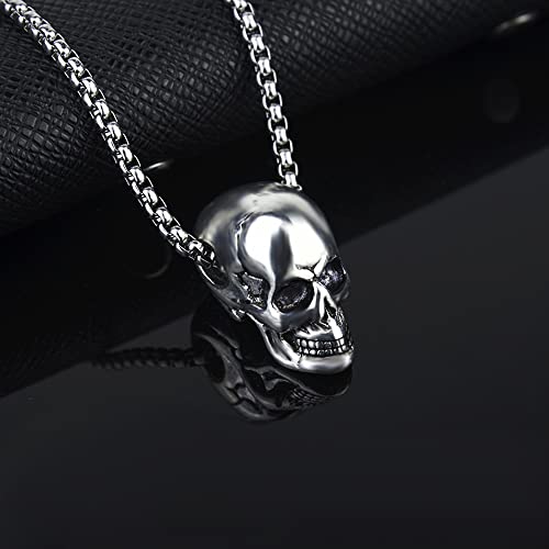 2 Pcs Skull Necklace Gothic Punk Rock Hip Hop Pendant Necklace Cool Amulet Pendant Necklace for Men - Black Silver 2