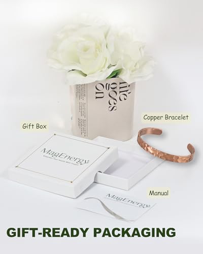 • [100% Solid Copper] Crafted from 100% pure copper bracelets for women and men, our raw copper bracelet is meticulously lab-verified to ensure no lead, nickel.Unlike low-quality imitations that use toxic-plated coatings, MagEnergy remains completely natural, uncoated and safe for daily wear.Over time, your bracelet will develop a unique patina, a natural testament to its authenticity. If you prefer its original luster, you can use the salt and lemon juice to a quick polish(or any copper cleaner)