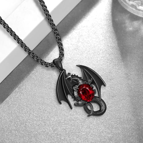 • 【Dragon Necklace for Men Material】: Our Black Dragon Necklace is crafted with a 925 sterling silver pendant, Red Cz and a high-quality stainless steel chain. It's hypoallergenic, free of lead, nickel, and cadmium, perfect for everyday wear. You can wear it on any occasions or as an everyday accessory to show off your style.