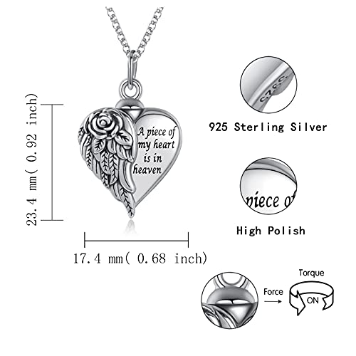 Sterling Silver Angel Wing Heart Urn Pendant Necklace For Ashes - A piece of my heart is in heaven Memorial Keepsake Cremation Jewelry 4