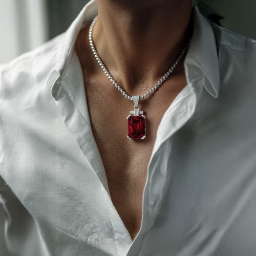 • NECKLACE DIMENSIONS - Elevate your style with this meticulously crafted necklace, featuring a pendant adorned with a gem-quality Cubic Zirconia gemstone measuring 13x18mm (~17.5ct). The pendant, measuring 1.45x3.45cm, strikes the perfect balance for men seeking refined elegance, neither too modest nor overly ostentatious.