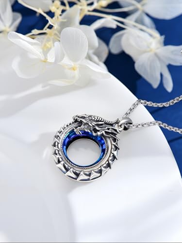 Dragon Necklace for Men S925 Sterling Silver Crystal Pendant Dragon Jewelry Gifts for Women Her 1