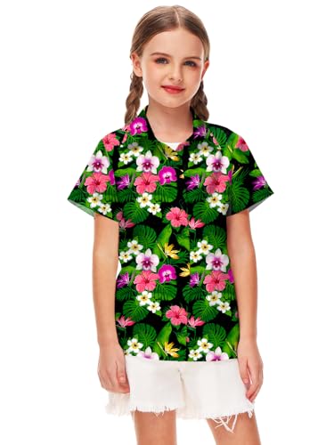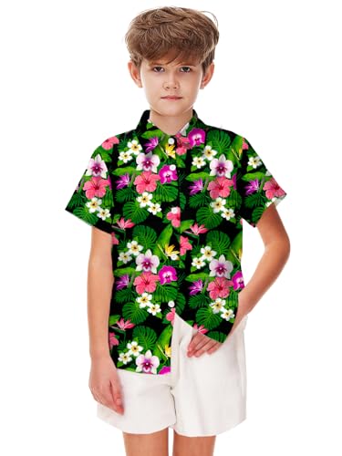 Remimi Unisex Kids Hawaiian Shirt Boys Casual Beach Hawaii Shirts Short Sleeve Button Down Aloha Tee Tops 5-14 Years 7