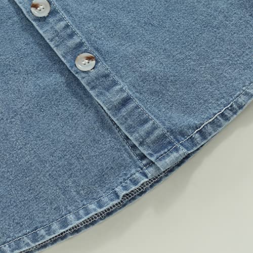 Toddler Baby Boys Short Sleeve Lapel Collar Button Down Casual Woven Denim Shirtwith Pocket 6