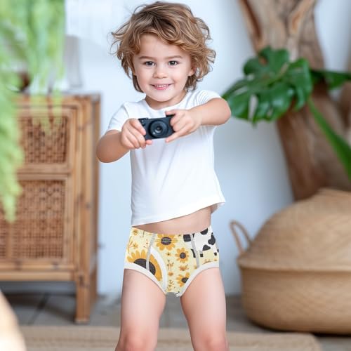 KLL Black White Cow Print Sunflowers Toddler Boys' Soft Underwear Breathable Undies 4