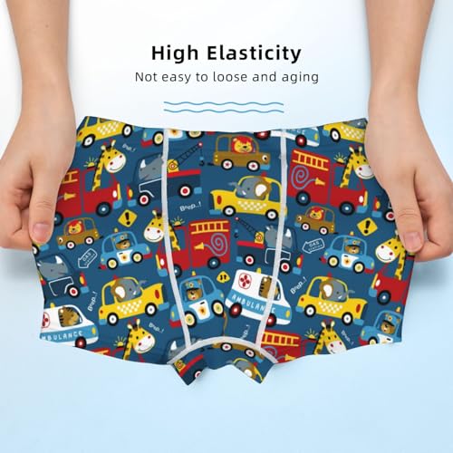 Boys' Cotton Boxer Brief Soft Underwear-Vehicles Cartoon With Funny Drivers,Animal Drivers 2