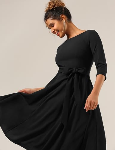 DRESSTELLS Cocktail Dresses for Women, Vintage Wedding Guest 3/4 Sleeves Formal Church Dress, Fall 2025 3