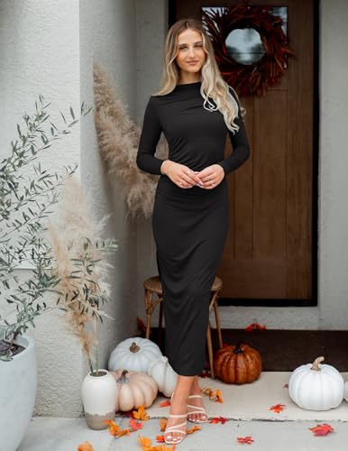 HOT ! ZESICA Women's Fall 2025 Long Sleeve Bodycon Maxi Dresses Sexy Ruched Crew Neck Slim Fit Cocktail Party Dress