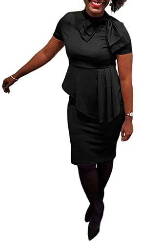 More information about HipGlamp Women's Fashion Peplum Bodycon Dresses Short Sleeve Bow Club Ruffle Pencil Party Dress