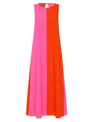 HOT ! Zontroldy Summer Casual Dress for Women Long Sleeveless Crewneck Dresses Color Block Side Slit Beach Vacation Dress