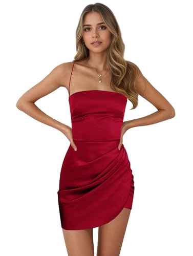• Dress Feature: This stunning satin homecoming ress is a real show-stopper. This mini homecoming dress features a classy square neckline, side pleat detailing and lace-back for an adjustable fit. you'll steal the show all night long on the dress !