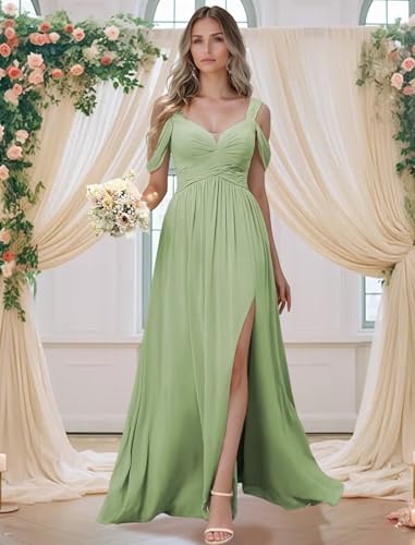 Off The Shoulder Bridesmaid Dresses for Women Chiffon Prom Dress with Split Floor Length Wedding Guest Dresses for Women 5