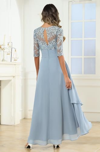 • Features:This sequin lace applique elgeant mother bride dress is made of a soft chiffon fabric,crewneck,half sleeve,ruched pleated ruffle details,high low tea length ankle length long.It has a built-in bra,fully lined