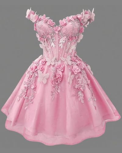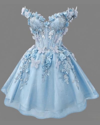 Women's Tulle Homecoming Dresses Short - 3D Butterfly Off Shoulder Beaded Cocktail Lace Homecoming Dress for Teen 2025 2