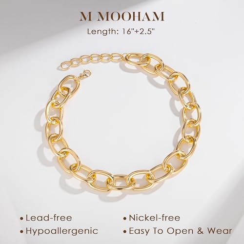 More information about M MOOHAM Chunky Gold Choker Necklace for Women, 14K Gold Plated Thick Teardrop Beaded Ball Paperclip Snake Chain Necklaces for Women Bold Statement Collar Necklaces Trendy Jewelry Gifts for Women