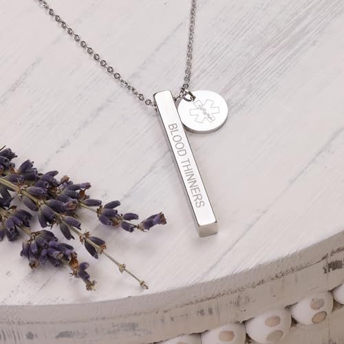 More information about Medical Alert ID Necklace for Women, Customizable Medic Alert Jewelry,18k Gold, Rose Gold, Silver, Personalized Engraving, Hypoallergenic, Waterproof, Includes Gift Box & Medical ID Wallet Card