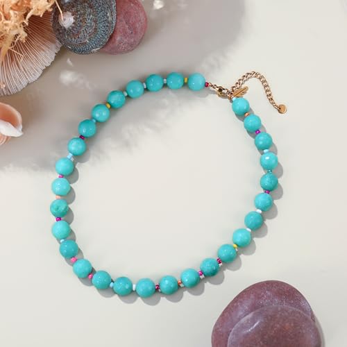 More information about Elegance 11 designs White Beaded Gemstone Necklace for Women, Chunky Beach Waterproof Stainless Steel Boho Choker Natural Stone Necklaces Surfer Summer Handmade Jewelry
