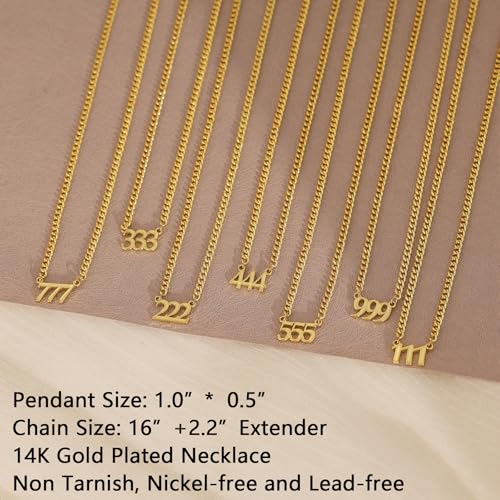 More information about Angel Number Necklace, Dainty 14K Gold Plated Number Pendant Necklace Simple Personalized Necklaces for Women Trendy Gold Choker Necklaces for Woman Fashion Non Tarnish Jewelry for Women