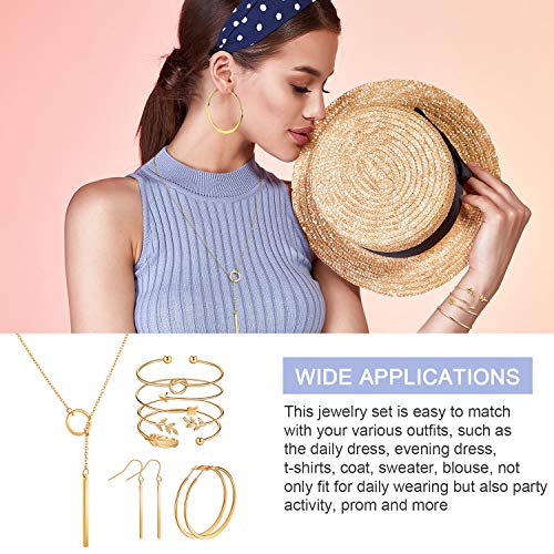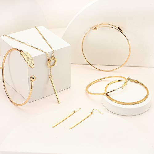 Hicarer Jewelry Set for Women Vertical Bar Necklace Jewelry Accessories Simple Bar Earrings Adjustable Cuff Bracelet 6