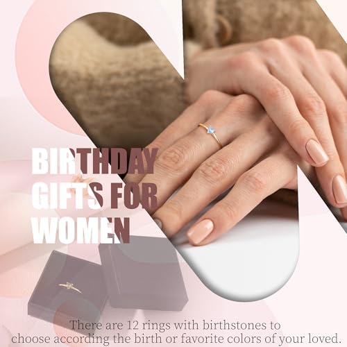 Stocking Stuffers for Teens, Birthstone Rings for Women Birthday Gifts for Teen Dainty 14K Gold Plated Rings 1-12 Months Birthstone Rings Size 5-10# Anniversary Christmas Gifts Wedding Promise Jewelry 4