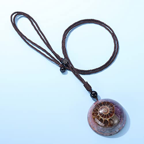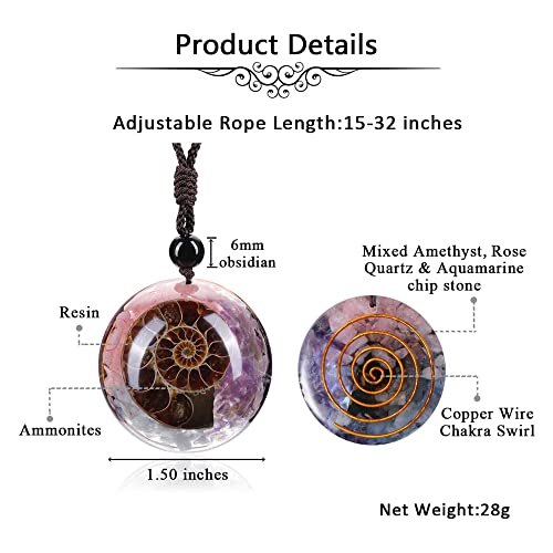 • Material: This Crystal Stone Necklace is made of amethyst,aquamarine and rose quartz chip stones and combined with natural resin, ammonites and copper wire chakra swirl, great decoration.Because of the natural stone, the shape,color and size of the penadnt may be different from pictures, please subject to the actual product you received!