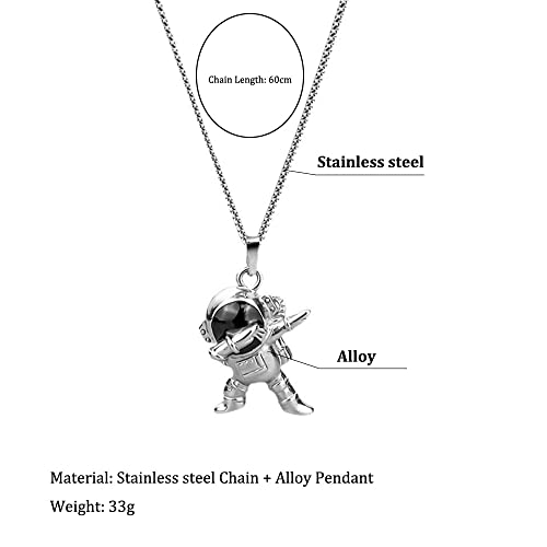 • MATERIAL --- Stainless Steel Chain +Alloy Pendant. The astronaut necklace chain is made of stainless steel, sturdy, nickel-free, non tarnish, electroplating process, long-lasting color retention, astronaut pendant is made of alloy material, smooth surface, comfortable and light to wear.