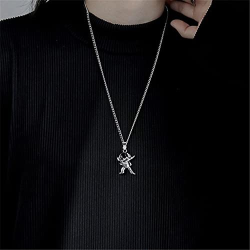 HOT ! Astronaut Necklace For Men Women Stainless Steel Silver Fashion Punk Rock Hip Hop Anime Edgy Trendy Cool Simple Unique Design Dance Astronaut Pendant Necklace Jewelry Gift For