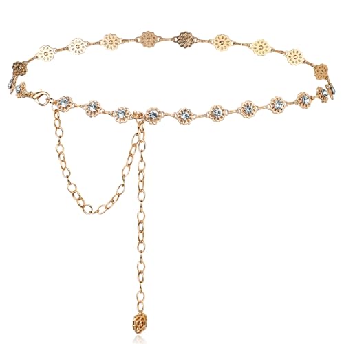 HOT ! Rhinestone Diamond Flower Waist Belt Decorative Rhinestone Dress Belt Gold Sparkly Crystal for Women Formal Dresses Gold Bling Diamond Wedding Dress Bridal Chain Belts