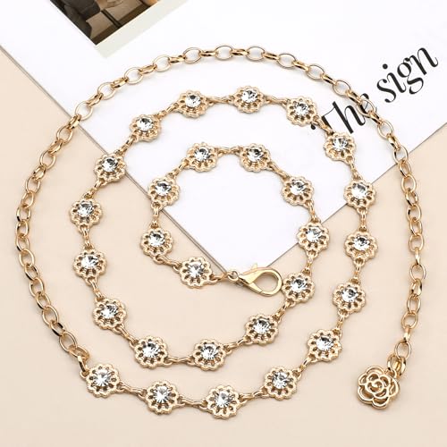 • Unique design: The sparkling rhinestone inlay design is use to shape this attractive belt chain. The shape is unique and eye-catching, creating a floral style design, making your outfit design more beautiful and fashionable