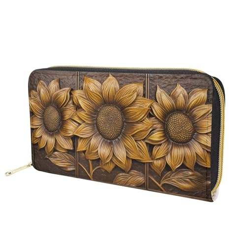 HOT ! Retro Sunflower Women Soft Leather Purses Zipper Protable Travel Wallet Long Shopping Pouch, Portable Zippered Women Purse Wallet, Gift for Mom, Gold