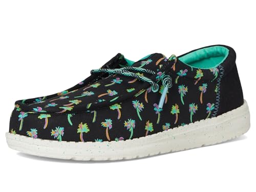 • Easy, breezy, textile makes this Hey Dude Kids Wally Funk Tropical Palm slip-on sneaker ready to roam. Easy-on elasticized laces, EVA outsole, and removable insole provide go-to comfort. The removable memory foam cushioned insole provides maximum com