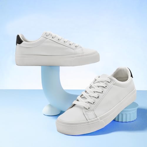 Kids PU Leather Sneakers Boys Girls Low Top White Shoes Unisex-Child Lace Up Tennis Shoes for Little Kid Big Kid 6